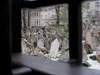 At 11:30 we have an appointment with three of our collegues for lunch. Till then we want to visit the famous jewish cemetary, but find that it costs 10 Euro. Too much money, if one only has 45 minutes time. So we stroll like dogs around the wall of the cemetary and find a small hole, where we can have a look at it. We kill the rest of the time in performing funny photographs, having the good and comfortable feeling, that we are in no need to hurry.